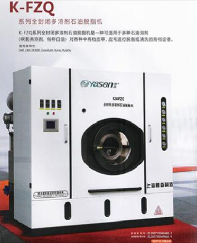 專(zhuān)門(mén)為各類(lèi)皮板皮毛脫脂工序而設(shè)計(jì)制造的脫脂干洗機(jī)是集全封閉干洗技術(shù)而研制的多功能機(jī)型。在性能和經(jīng)濟(jì)效益上極大地優(yōu)于原普通的干洗機(jī),洗滌、脫脂、回收、再生效果,是一種綠色環(huán)保型專(zhuān)用皮毛脫脂機(jī)。