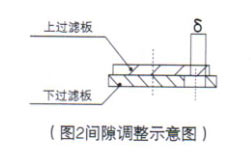 本機(jī)切制范圍為0.5-4mm,調(diào)整方法為依次拆下上蓋,擰下刀軸上方蓋形螺母并拆下刀組,拿下過濾板,根據(jù)所需切制規(guī)格調(diào)整過濾板(圖2所示δ的大。